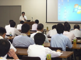 本会の第一部では、会員を代表して中国電力(株)味能部長(JIPA常務理事)に開会挨拶を頂き、久慈専務理事より、最新のトピックスとして、職務発明および営業秘密について近況報告が行われました。