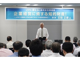 2018年8月7日に、JIPA創立80周年を記念し、TKPガーデンシティPREMIUM秋葉原にて、JIPAへ多大なご貢献をいただいた石田正泰先生(青山学院大学法学部 特別招聘教授)を講師にお迎えし、『企業経営に資する知的財産!〜JIPAへの期待と日本企業の「あるべき知的財産経営」〜』と題して講演会を開催し、163名の方にご参加いただきました。