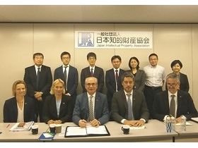2018/10/17 東京事務所にて、EPOとの意見交換を実施しました。EPOからRaimund Lutz副長官、Telmo Vilela部長(国際協力)、Heli Pihlajamaa部長(特許法)、Jorgen Jochheim部長(クォリティーマネジメント)、プロジェクトコーディネーターのIrene Schellner氏の5名が 来局され、JIPAより加藤常務理事、国際政策PJ宮下リーダー、国際第2委員会今井委員長、同委員会メンバーおよび事務局10名が参加し、総勢15名の会合となりました。