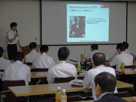 その後、テクノプロデューサー(株)取締役の五丁龍志氏により、「特許情報の戦略的活用」と題し、ナノインベンチャー企業を立ち上げた体験に基づき、特許情報の有無によるマーケッティングの違いを比較しながら、新事業の顧客層、事業領域、事業ターゲット、顧客アプロ―チについて解説していただきました。特にその中では、新規事業の立ち上げに特許情報を上手く活用することにより、一層的確なマーケット分析を可能とする貴重な実例を紹介され、参加者にとっては他社の特許情報の活用策を知るという意味で有意義な講演でした。