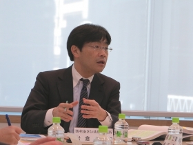90分間の議論の中では、中小企業の経営環境と商品開発の視点より、技術開発(発明)から商品の市場展開における各部門の役割と予見性、発明者を含めた社員処遇、そして発明と発明者の扱いについて、熱心な議論が交わされました。最後に各企業にとっての本制度のあるべき姿(法人帰属の妥当性等)についてお話頂きました。
