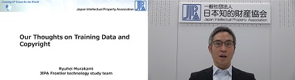 村上氏は、「Our Thoughts on Generative AI and IP」との題で、