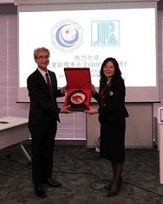 GDIPSからは、任重副理事長、中国東莞市知識産権研究会李家駒会長、GDIPS張雅蓮事務局長ほかHuawei、テンセント、コンバ・テレコム、景田食品飲料、広東联塑企業知財部等12名ほどが参加されました。日中企業連携会議が東京で実施された機会によるもので、今回初めてJIPAの事務所に御来局されました。
