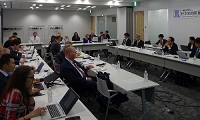 冒頭、下川原理事長は、AIPLAの往訪を歓迎し、より一層の交流に向けた期待を述べられ、その後、若代副理事長の司会進行のもと、以下3つのトピックスに関し、JIPA・AIPLA双方がプレゼンの上、意見交換を行いました。 最後に、国際第1委員長英保様より、今年度のトピックスは実務的にも非常に参考になるものが多く、学ぶことが多かった、と謝意を伝えました。