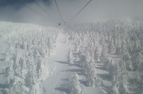 蔵王は,樹氷が世界的にも有名で,ちょうど春節の時には,大勢の外国人観光客で山頂が賑わっていました。リフト設備は少し古いのですがスキー場自体は素晴らしく,2日でも全部滑り切れないくらい広いです。蔵王の魅力のもう一つは麓の温泉街です。旅館以外に外湯があり,旅館で券をもらって共同浴場に行きました。