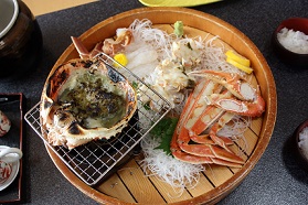 「越前がに」は,福井県の漁港に水揚げされる雄のズワイガニのことです。甘くひきしまった肉質で,ズワイガニの中でもトップブランドの最高級品種として知られています。また,全国で唯一の皇室献上ガニとしても有名です。11月初めに漁が解禁され,3月末まで食べることができます。この間,福井県の漁港に,多くの観光客が越前がにを求めて集まってきます。