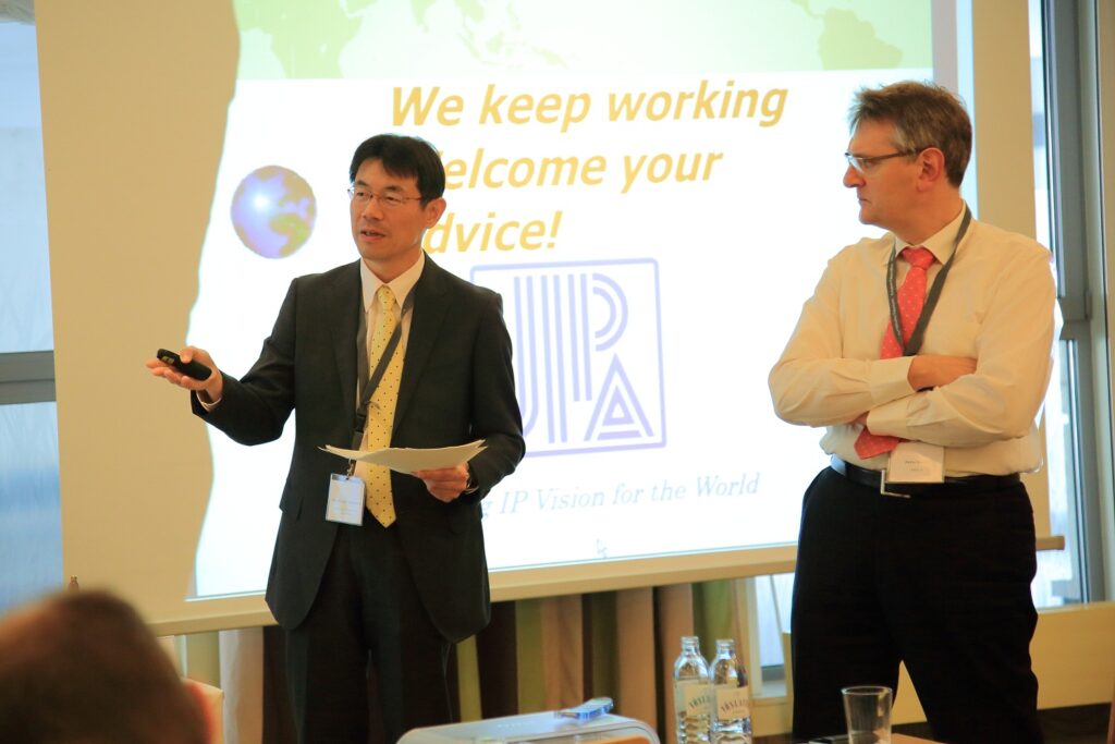 JIPA’s IP Information Search Committee dispatched a three-member delegation, led by Mr. Inoue, Managing Director to EPO East Meets West Conference 2014 and the 67th PDG IMPACT Meeting, held in Vienna, Austria during April 9-17, 2014. The reason for delegating to the meetings was to interact with the Patent Documentation Group (PDG), which is a user group of EPO, to thereby enhance a patent information environment beneficial for Japanese companies. The delegation took advantage of this to request that the Japanese FI and F-term classification should be incorporated into the CPC patent classification system at the following presentation and meeting. The delegation also interacted with European user groups and shared information.