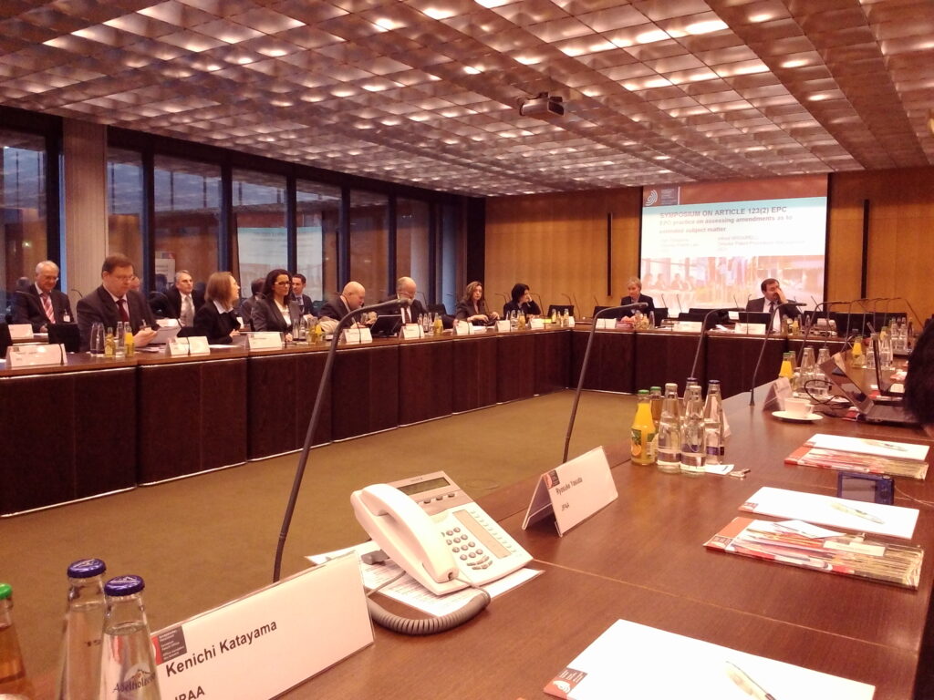 Mr. Hirabayashi, member of the International Affairs Committee participated in the above symposium, which was held at the EPO headquarters (Munich, Germany) on February 7, 2014. This symposium was held for EPO to carefully listen to the users because EPO had received frequent complaints from user organizations that the current judgment under EPC Article 123(2) is so strict that substantially only literal amendments are allowed.