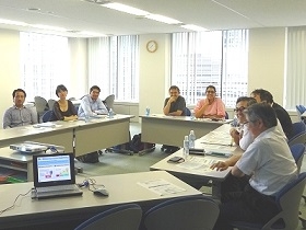 On August 24, 2016, JIPA received a meeting of an IP training group, consisting of three from Mexico, one from Paraguay, and one from the Philippines, who were participating in IP training programs organized by WIPO and JICA, held at the Graduate School of Osaka Institute of Technology. With them, Mr. Hiroki Naito (Panasonic) who is a member of the WIPO PJ, and three JIPA secretariat members had a meeting to share their views. The trainees stated that they came to Tokyo to learn the roles and activities of Japanese IP organizations, and visited, the JPO, the Institute of Intellectual Property, and JIPA.