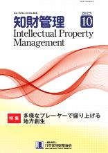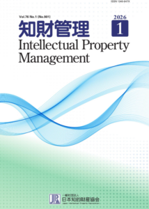 知財管理 2026年1月号 目次 VOL.75 NO.12(NO.900) INTELLECTUAL PROPERTY MANAGEMENT 見どころポイント 「知財管理」誌は日本知的財産協会の機関誌 (月刊約3,700部) であり、会員相互の研鑽・交流情報誌としての役割を持つとともに、専門性の高い論文や企業における最新の知的財産活動を掲載する知的財産関係の専門誌としても高く評価され、知財の実務家や専門家にとってなくてはならない雑誌となっています。 目次を見る