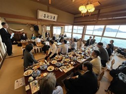 協議会終了後には、瀬戸内海と来島海峡を望む会場にて懇親会を開催しました。中国・四国・九州地区のJIPA会員様と発明協会会員様が交流し、少数知財研究会やDE&Iをはじめとする幅広いテーマについて意見交換を行うとともに、会員相互の親睦を深めることができました。