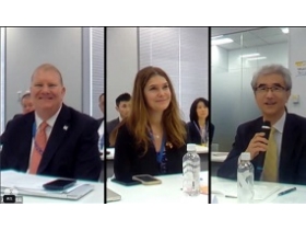 AIPLAからは理事長Kim Van Voorhis 氏、役員Lauren Emerson 氏、IP Practice in Japan チェアのKevin Kunzendorf氏、副チェアNick Mattinglyを含む、 21名ほどが参加され、JIPAからは、オンラインで山中昭利理事長、東京事務所で上野剛史専務理事、中村麻紀常務理事、有識者連携WG特許政策チーム、国際政策WG、国際第1委員会の方が参加し、オンラインも合わせ20名ほど参加し、総勢40名ほどの会合となりました。