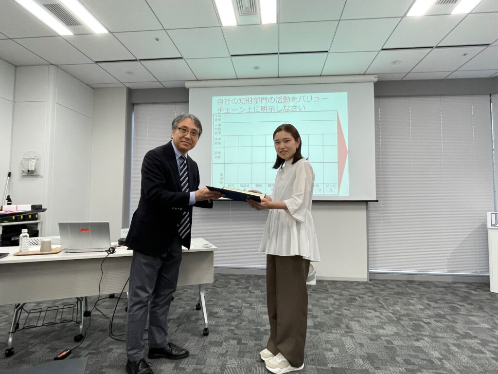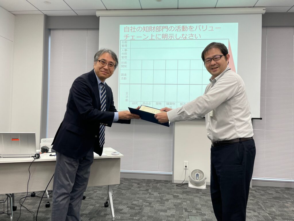 今年度は、(株)栗本鐵工所、ソニー知的財産サービス(株)の受講生が表彰されました。